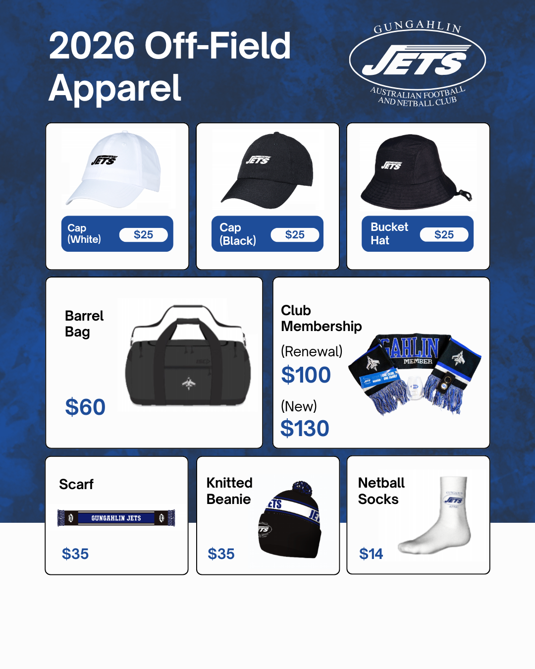 Our 2026 Jets merch is now available. Gear up for the season and wear the club colours with pride. Browse the range and shop via the link below. 🔵⚪⚫